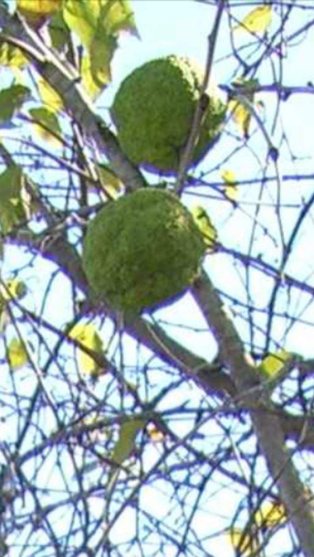 The Osage Orange tree is actually not a Orange tree at all. It is known by several names and to just name a few : Bow Dock, Bo Dark, Hedge Apple and Mock Orange.